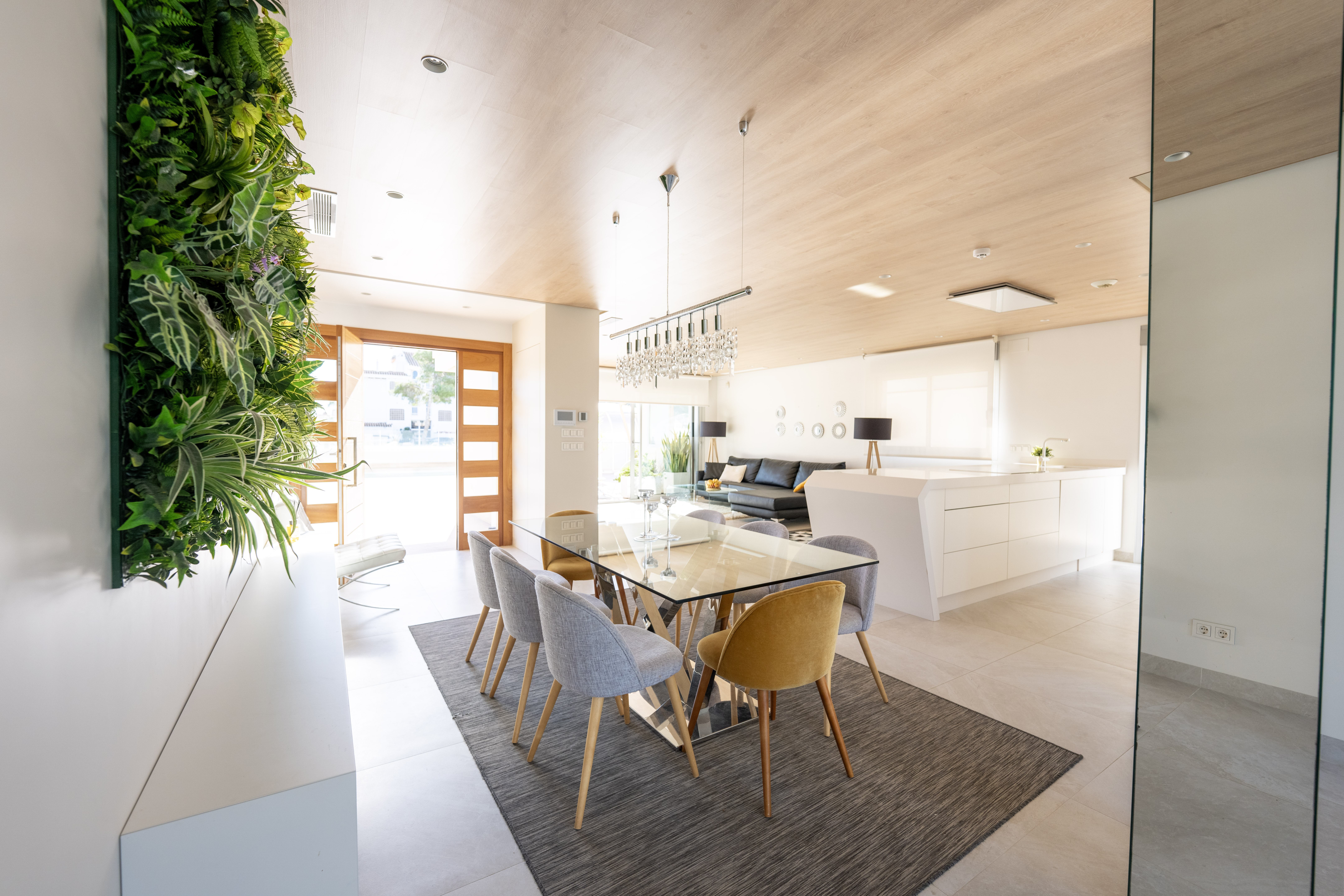 Oplev denne pragtfulde, moderne villa fra 2019, beliggende i ét af kystens mest eftertragtede områder – kun 200 meter fra det blå Middelhav. Med sin sydøstlige orientering strømmer dagslyset ind gennem store glaspartier hele dagen, mens udsigten til havet fra stueetagen skaber en konstant fornemmelse af kystnærhed og frihed. Villaen er skabt til moderne familiebolig med et åbent og luksuriøst stueområde, der åbner sig helt ud til det fri. Her finder du en stor terrasse, en privat opvarmet swimmingpool med retræktabelt dæk – en perfekt oase hele året rundt. Inden døre præsenterer den 4 soveværelser, herunder to børneværelser med fælles badeværelse samt en rummelig hovedsuite af høj standard. Luksus går hånd i hånd med velvære og funktion: En indendørs hammam inviterer til afslapning, en elevator forbinder alle etager, og på det panoramatiske solsikrede tagdækket findes en udendørs køkkenfacilitet og toilet – ideel til lange sommeraftener under stjernerne. I kælderen er der lukket garage og carport, mens solpaneler sørger for øget energieffektivitet og lavere driftsudgifter. Beliggenheden kunne ikke være bedre: Alt er inden for gåafstand – butikker, bager, barer, restauranter, strandklub, bank, tandlæge, apotek, sundhedscenter, supermarked, ugentligt marked og kystnære promenader. Alligevel ligger ejendommen i en fredfyldt og rolig omegn, fri for trafik og uro – en ægte oase for dem, der søger både tryghed og livskvalitet. En fuldt møbleret villa, hvor hvert detalje er gennemtænkt for dit bedste. Alt er klar – alt hvad der mangler, er dig og din familie. Discover your next home in the sun with Real Estate by Gardewik – experts in luxury properties on the Costa Blanca since 1986.