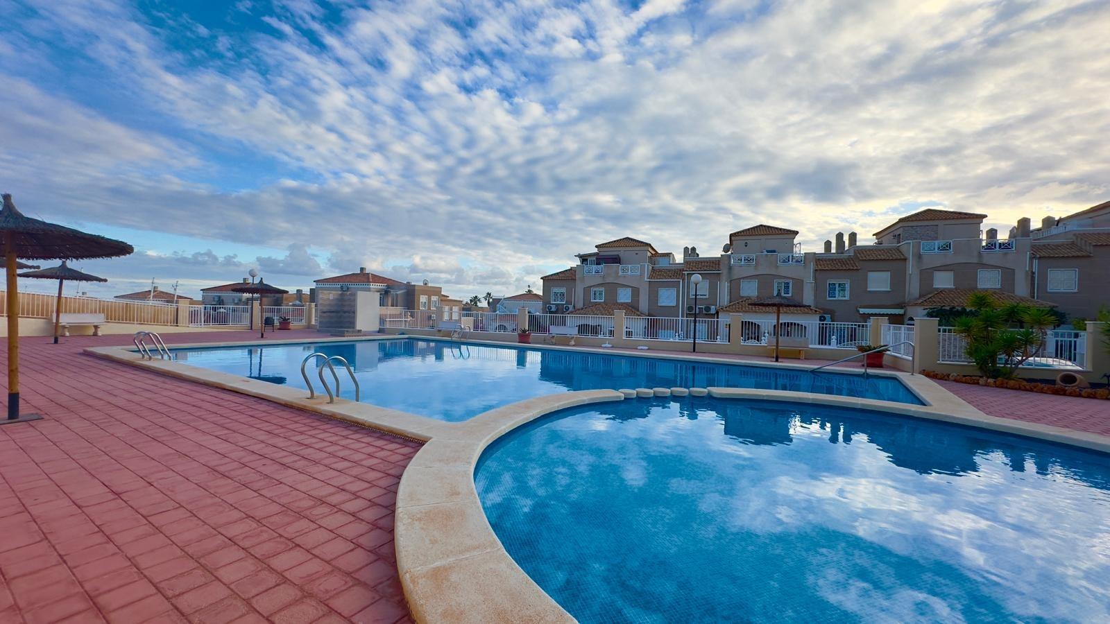 COMPLETELY RENOVATED GROUND FLOOR BUNGALOW IN CABO CERVERA – COMFORT, OUTDOOR SPACE AND PRIVILEGED LOCATION We present this excellent opportunity to acquire a completely renovated ground floor bungalow, located in the prestigious and peaceful area of Cabo Cervera, one of the most highly valued residential areas due to its proximity to the sea, its well-kept surroundings and its relaxed atmosphere throughout the year. An ideal property as a permanent residence, second holiday home or secure investment on the coast. The property stands out for its comfortable single-storey layout, which guarantees accessibility, functionality and comfort. It has two well-proportioned bedrooms, designed to offer cosy and practical spaces, ideal for both relaxation and everyday use. The renovation gives it a contemporary look and a modern feel, ready to move into without the need for any additional improvements. The bathroom has been renovated and features a modern shower tray, providing comfort, safety and a contemporary design that meets today's needs. The finishes chosen reinforce the feeling of cleanliness, spaciousness and functionality. The property also has a utility room, a highly valued space that can be used as a laundry area, additional storage or support for daily life, significantly improving the organisation of the home. One of the great attractions of this bungalow is its private outdoor terrace, perfect for enjoying the Mediterranean climate all year round. This space is ideal for outdoor breakfasts, family gatherings, moments of relaxation or even for creating a pleasant chill-out area. As it is a ground floor property, access to the outside is convenient and direct, providing a feeling of independence similar to that of a detached house. The property includes a closed garage, a very important added value in the area, which guarantees comfort, security and protection for your vehicle. In addition, the residential complex has parking areas, making parking easier for both residents and visitors. The residential complex offers a perfectly maintained communal swimming pool, ideal for cooling off in the summer months, enjoying with the family or increasing the appeal of the property if you decide to use it for holiday or seasonal rentals. The south-facing orientation of the property ensures excellent natural light throughout the day, creating warm, bright and pleasant spaces at any time of year. This orientation is particularly valued for its energy efficiency and for improving the quality of life within the home. In terms of location, the bungalow is just 850 metres from the beach, allowing you to enjoy the sea with a pleasant walk, without sacrificing the tranquillity of an established residential area. Cabo Cervera is known for its well-kept surroundings, its proximity to coves and beaches, and its good connection to all necessary services: supermarkets, public transport, restaurants and leisure areas. This property represents an excellent investment opportunity, as it combines highly sought-after features: comprehensive renovation, outdoor spaces, garage, communal swimming pool and a privileged location near the sea. All this guarantees high demand for both holiday and long-term rentals, as well as good prospects for appreciation. In short, this is a renovated, bright and functional bungalow with a terrace, garage included, communal swimming pool and south-facing, located in one of the most attractive areas of the coast. A property designed to enjoy, live in or invest in with complete peace of mind. Do not miss this opportunity. Contact us for more information or to arrange a viewing and discover the full potential of this magnificent property in Cabo Cervera.
