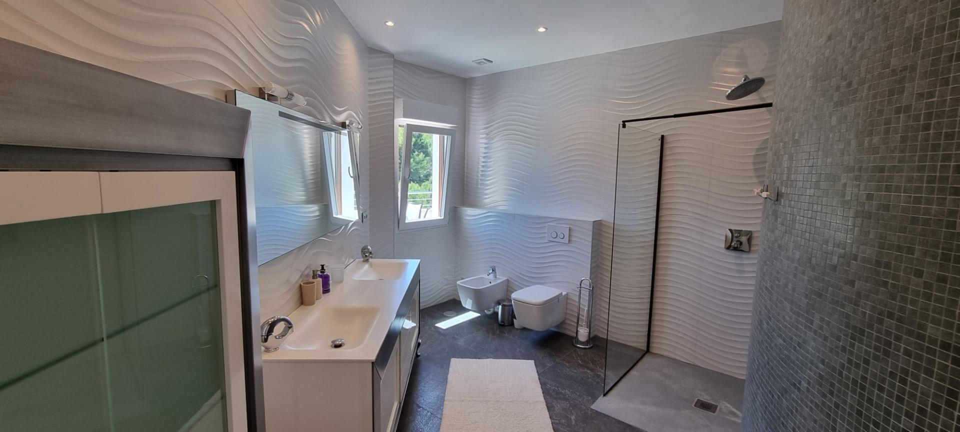Deux villas luxueuses en première ligne de golf, à 6 km du centre ville d'Altea. Une villa est entièrement terminée et meublée, l'autre est en construction (environ 70 % achevée). Le terrain a une superficie de 2 400 mètres carrés, la première villa a 490 mètres carrés (terminée), la deuxième villa a 490 mètres carrés (en construction). La villa finie dispose de 7 chambres et 5 salles de bains. La distance de la mer et de la ville est de 3 km. Les villas sont équipées d'un barbecue et disposent d'un parking pour plusieurs voitures. La villa en construction fait 800 mètres carrés, la villa finie fait 1600 mètres carrés, avec la possibilité de personnaliser l'intérieur selon vos préférences.